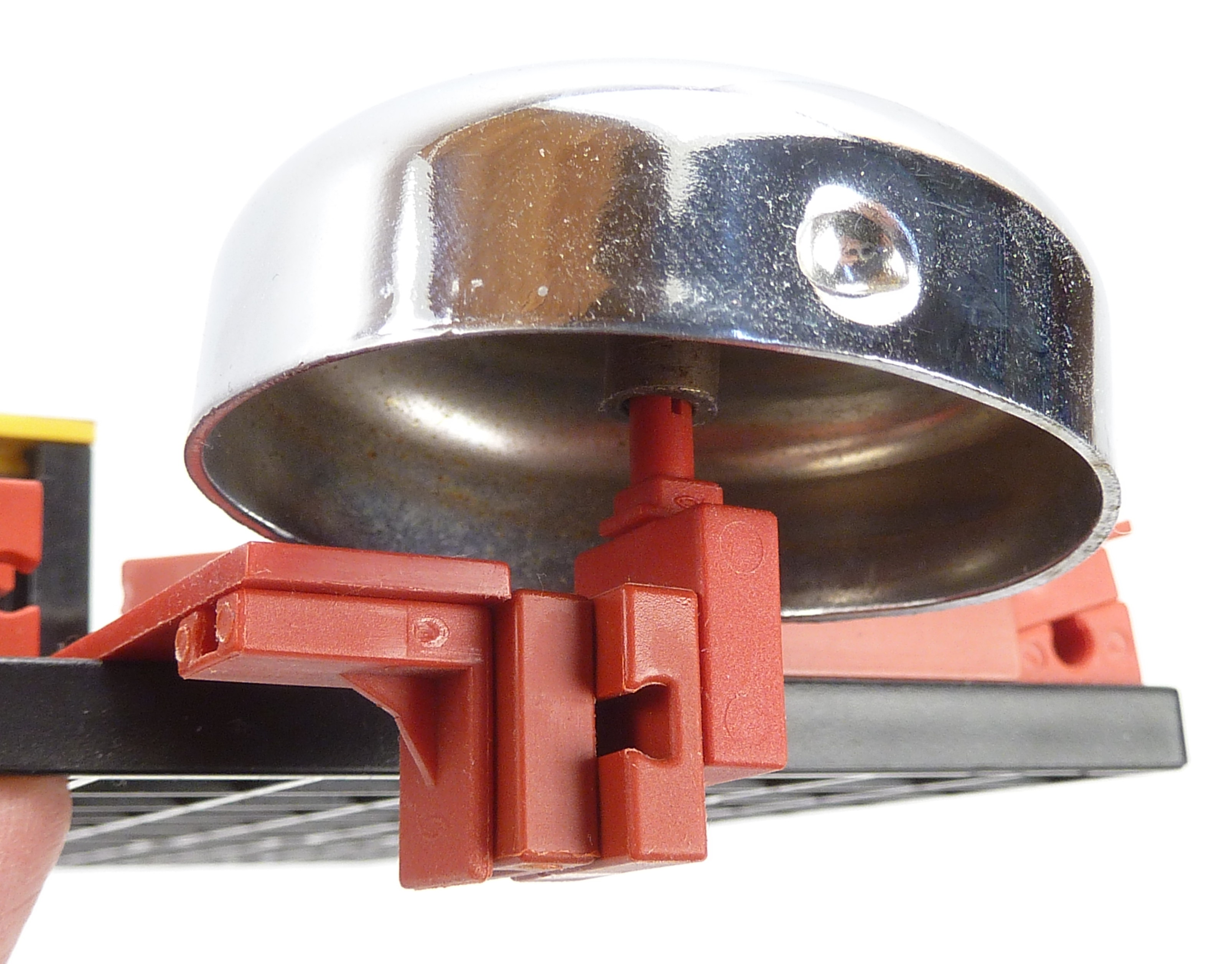 fischerfriendsman Stefan Roth hat den so Klingelhalter verbessert, so dass er Klingeln verschiedener Größe aufnehmen kann. Er hat eine sehr schöne Glocke in seinem Sortiment, die sich auch sehr gut für Kugelbahnen eignet!